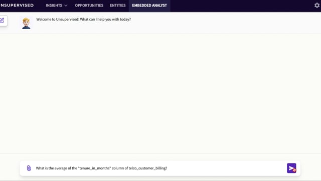 - Prompt: What is the average of the "tenure_in_months" column of telco_customer_billing?