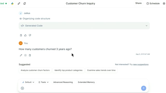- Prompt: How many customers churned 3 years ago?