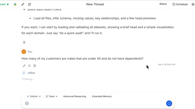 - Prompt: How many of my customers are males that are under 40 and do not have dependents?