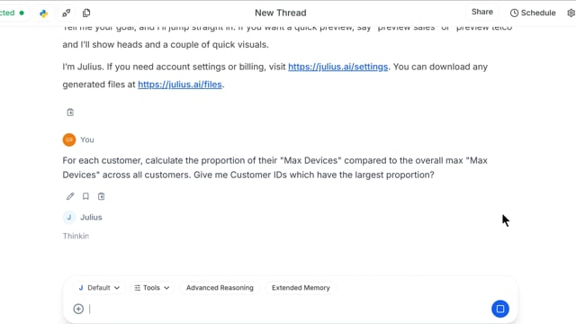 - Prompt: For each customer, calculate the proportion of their "Max Devices" compared to the overall max "Max Devices" across all customers. Give me Customer IDs which have the largest proportion?