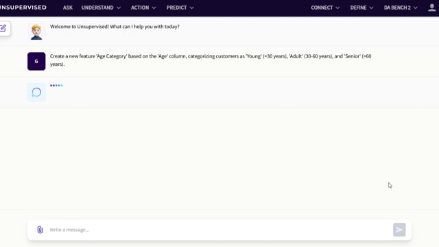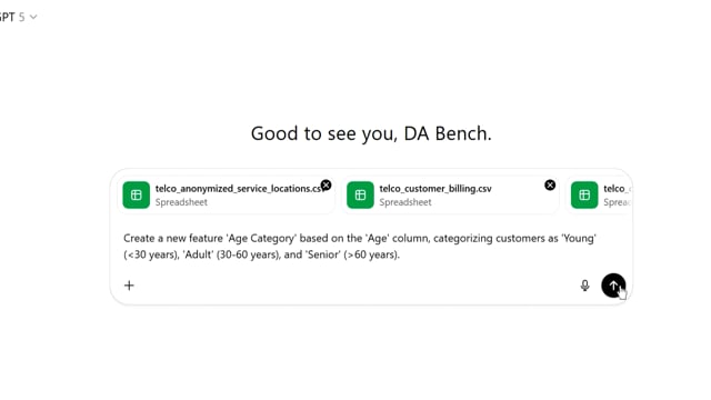 - Prompt: Turn 1: Create a new feature 'Age Category' based on the 'Age' column, categorizing customers as 'Young' (<30 years), 'Adult' (30-60 years), and 'Senior' (>60 years). Turn 2: Tell me what the values of Age Category' are for Customer IDs '0274-JKUJR', '3345-PBBFH', '1134-YWTYF', and '7056-IMHCC'?