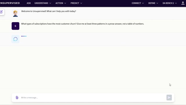 - Prompt: What types of subscriptions have the most customer churn? Give me at least three patterns in a prose answer, not a table of numbers.