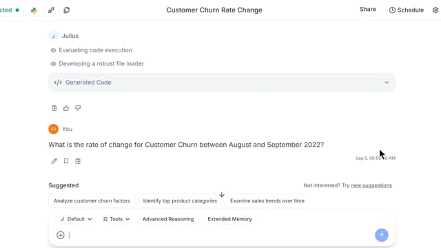 - Prompt: What is the rate of change for Customer Churn between August and September 2022?