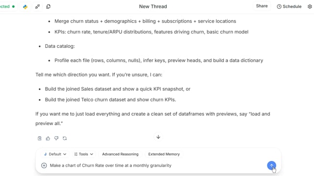 - Prompt: Make a chart of Churn Rate over time at a monthly granularity