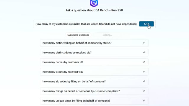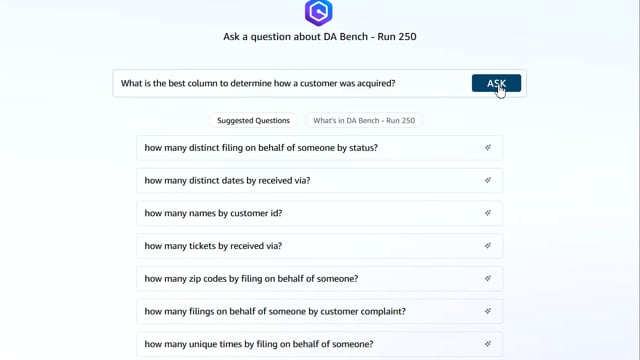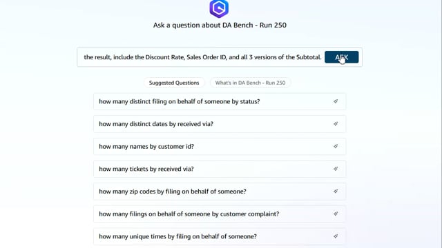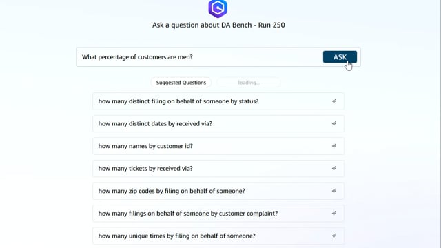 DA-bench Results for Run #250 — Test Score: -10.0% (-28 / 280)