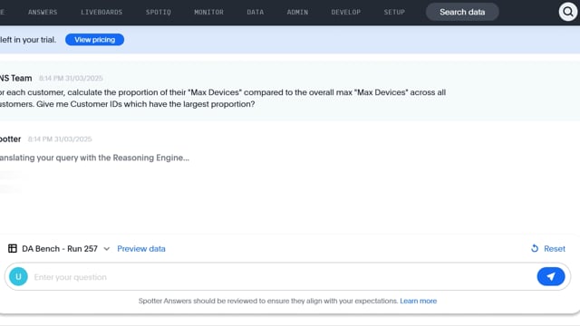 DA-bench Setup for Run #257 — Scalability Score: 85.7% (6 / 7)
