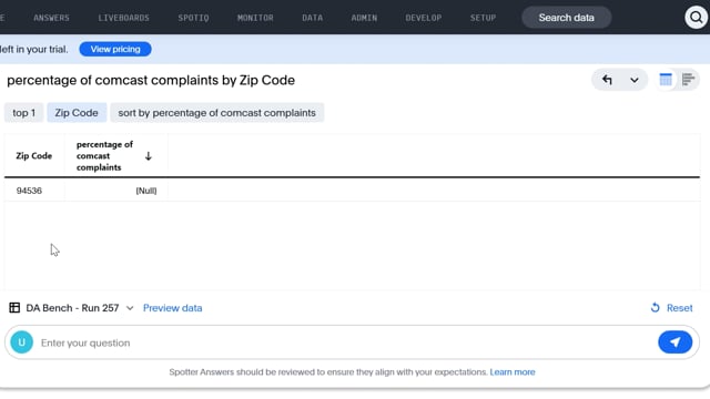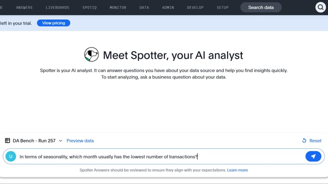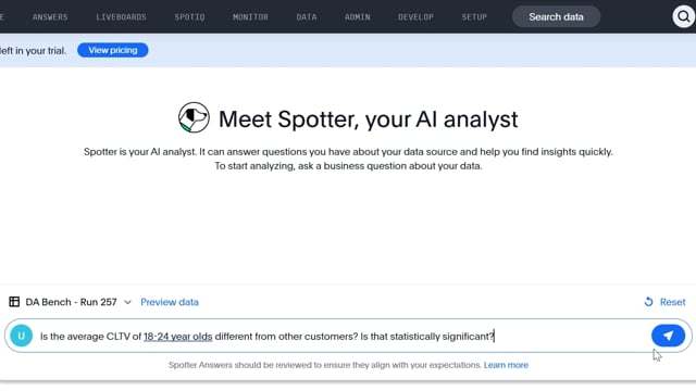 DA-bench Results for Run #257 — Test Score: 19.6% (55 / 280)