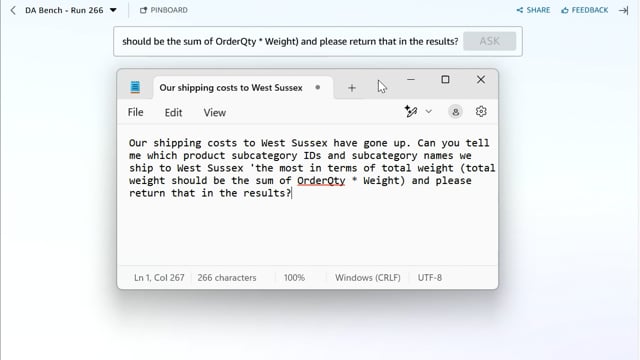 DA-bench Results for Run #266 — Test Score: -7.1% (-20 / 280)