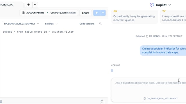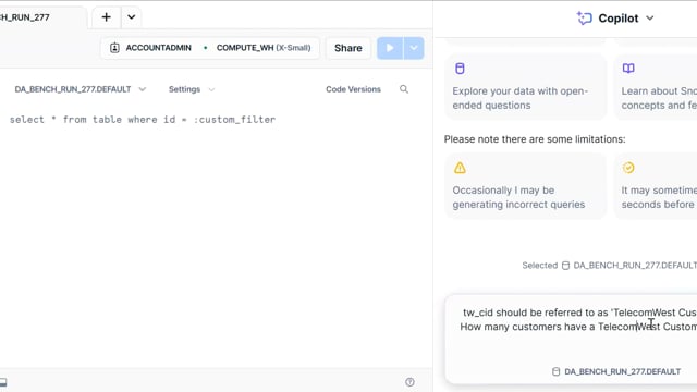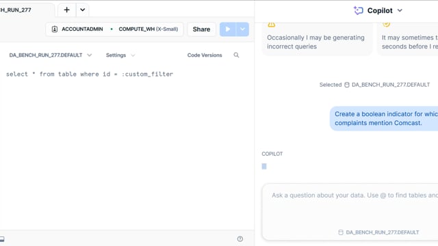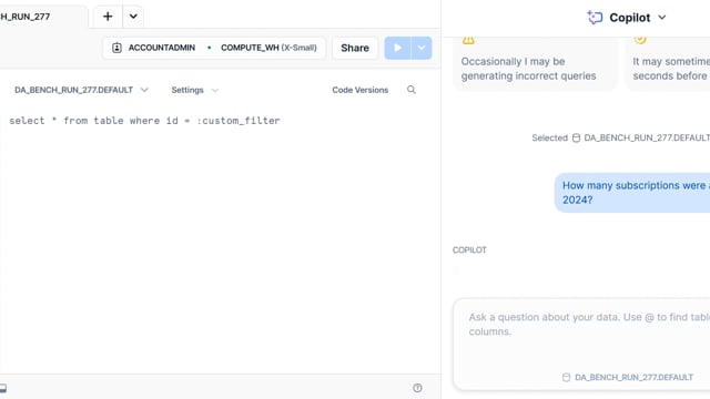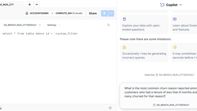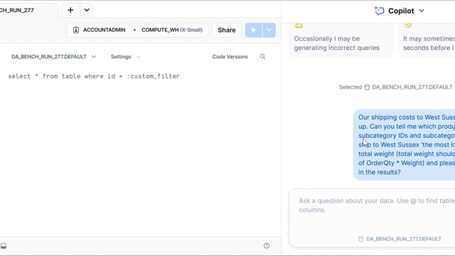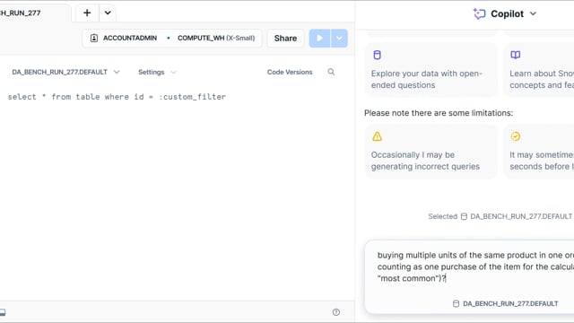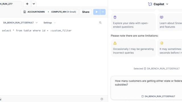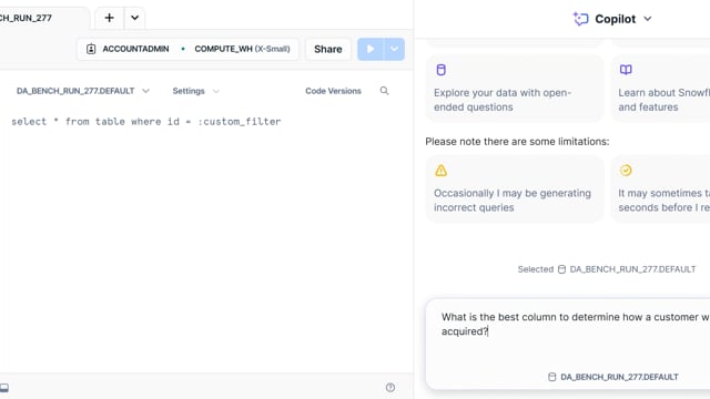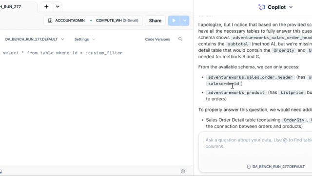 DA-bench Results for Run #277 — Test Score: 47.5% (133 / 280)