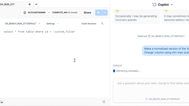 DA-bench Setup for Run #277 — Scalability Score: 85.7% (6 / 7)