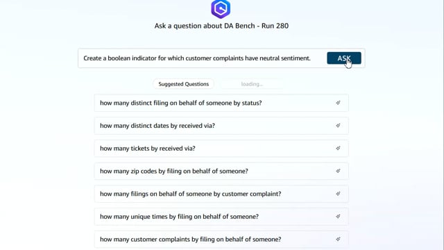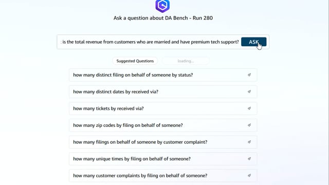DA-bench Results for Run #280 — Test Score: -12.9% (-36 / 280)