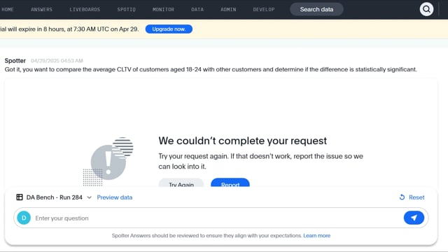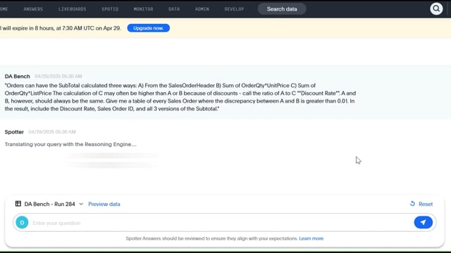 DA-bench Results for Run #284 — Test Score: 22.9% (64 / 280)