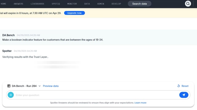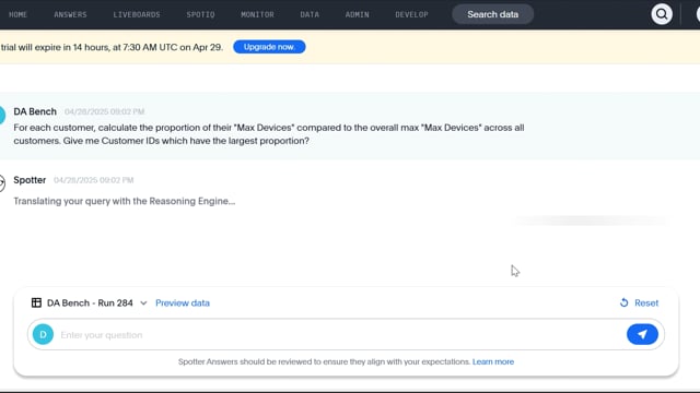DA-bench Setup for Run #284 — Scalability Score: 85.7% (6 / 7)