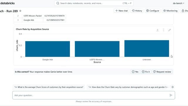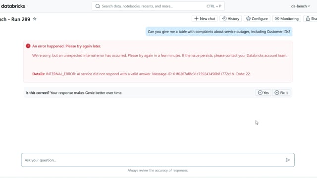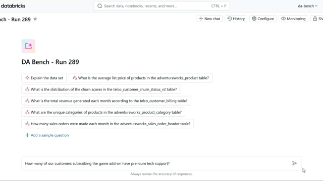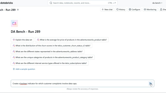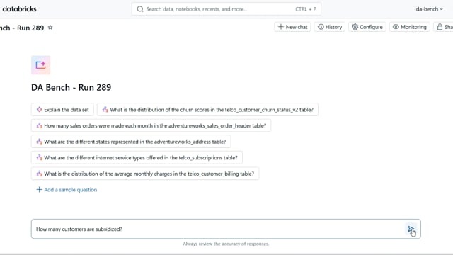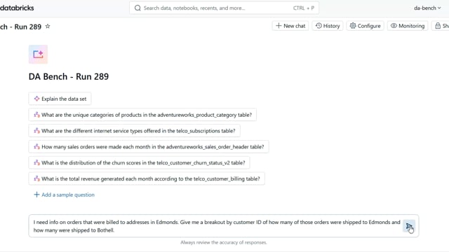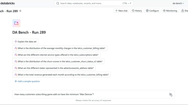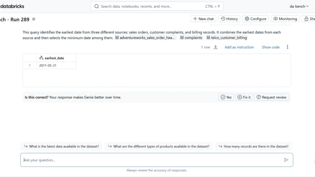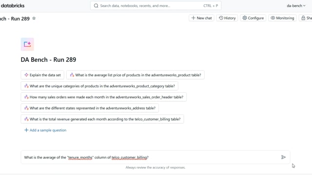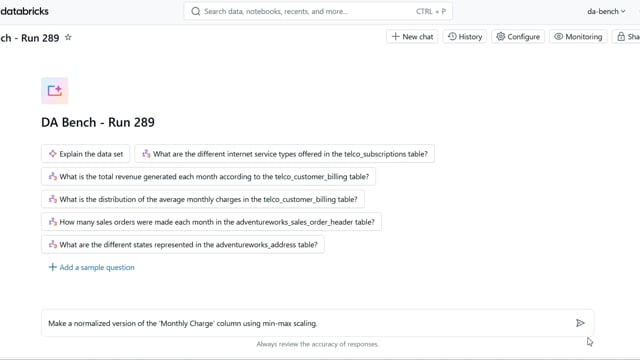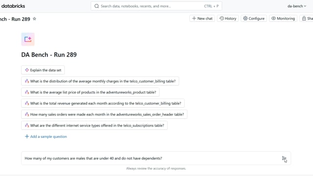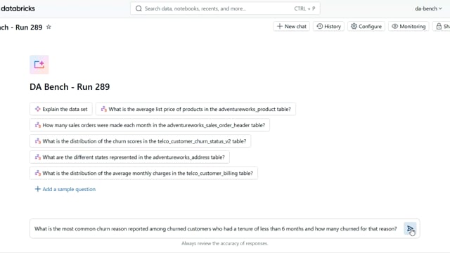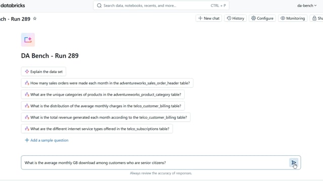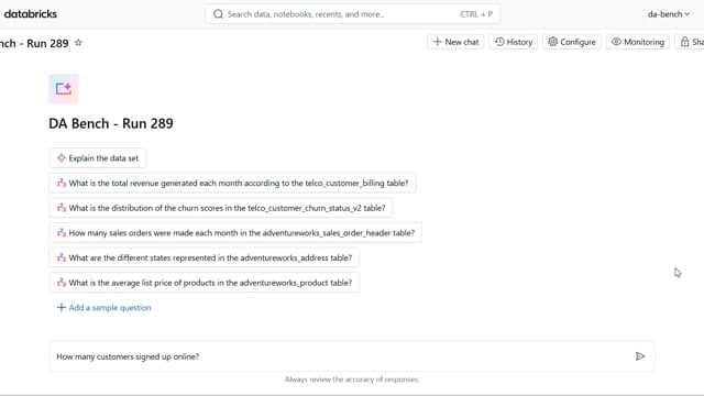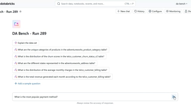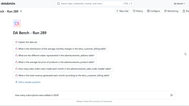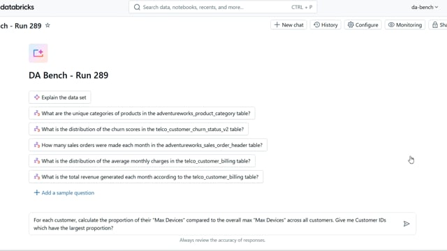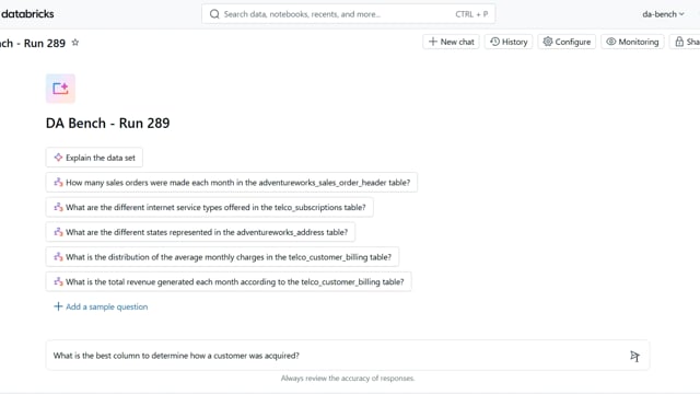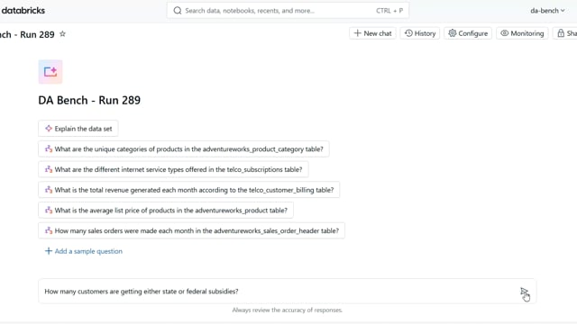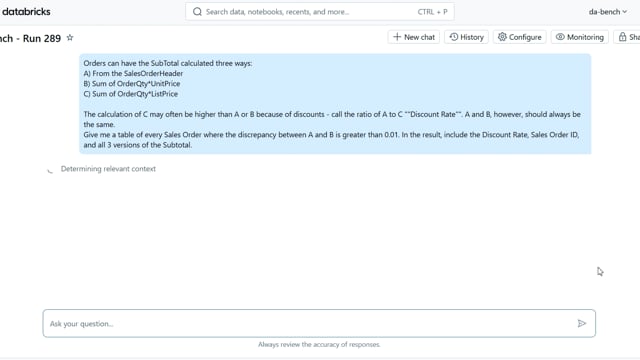 DA-bench Results for Run #289 — Test Score: 67.9% (190 / 280)