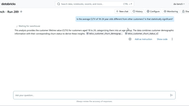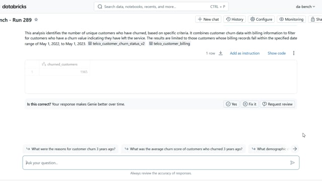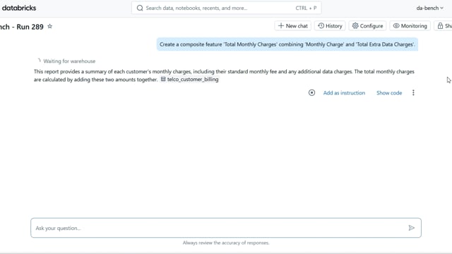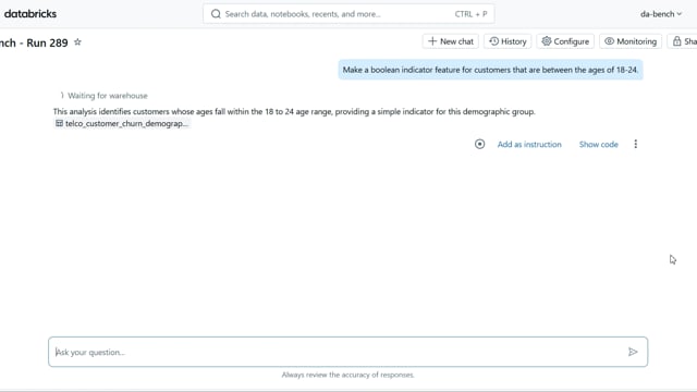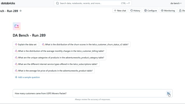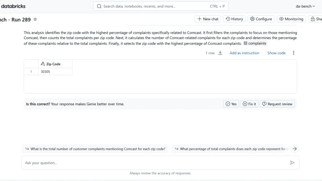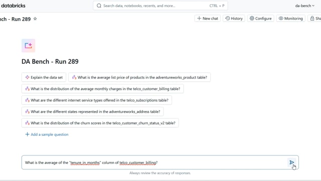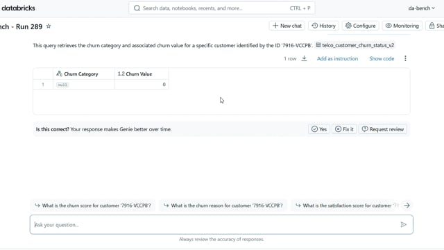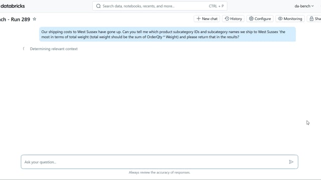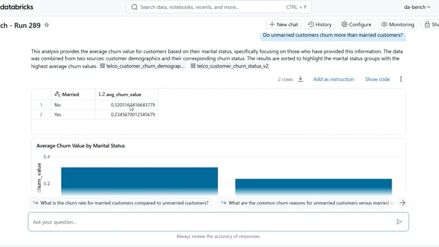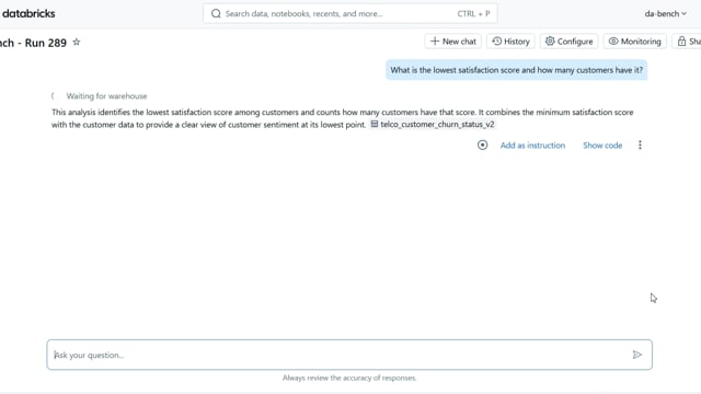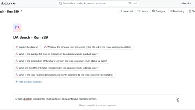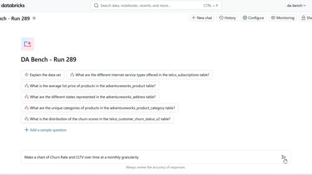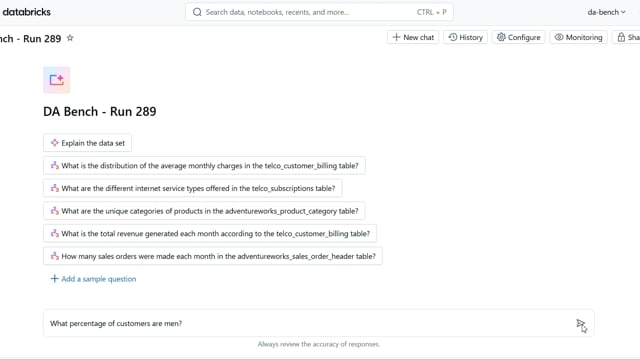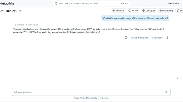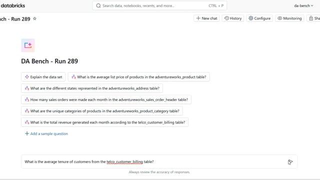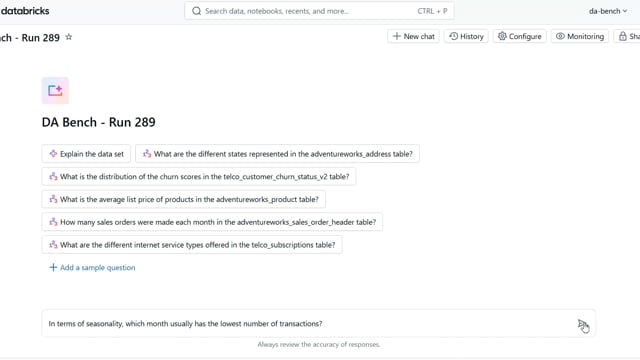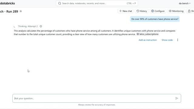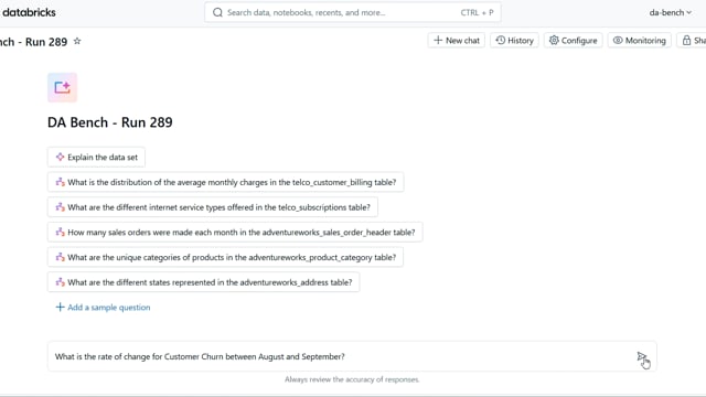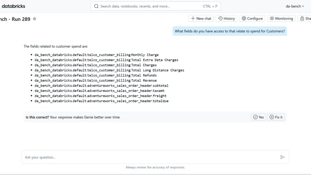 DA-bench Results for Run #289 — Test Score: 67.9% (190 / 280)