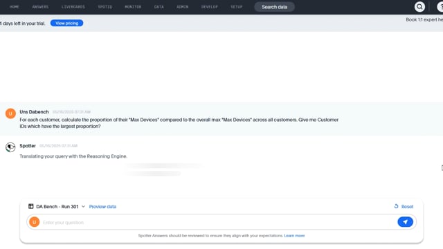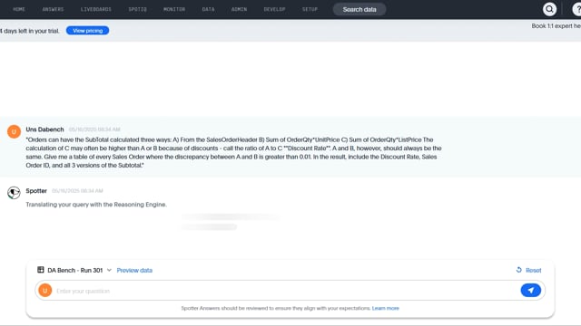 DA-bench Results for Run #301 — Test Score: 11.4% (32 / 280)