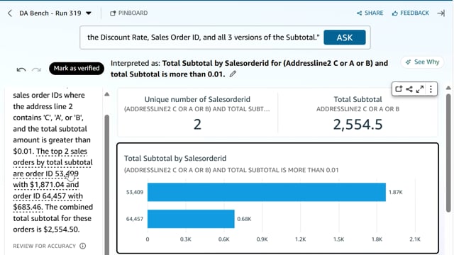 DA-bench Results for Run #319 — Test Score: -7.1% (-20 / 280)