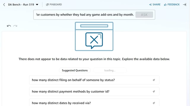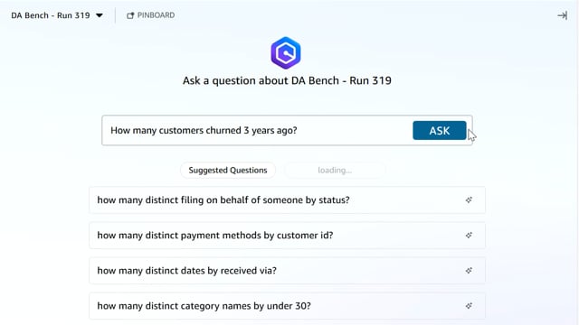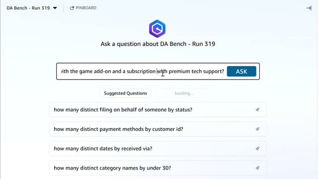 DA-bench Setup for Run #319 — Scalability Score: 85.7% (6 / 7)