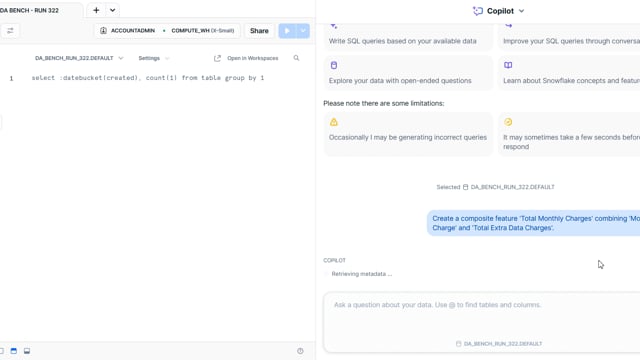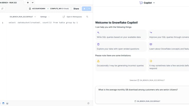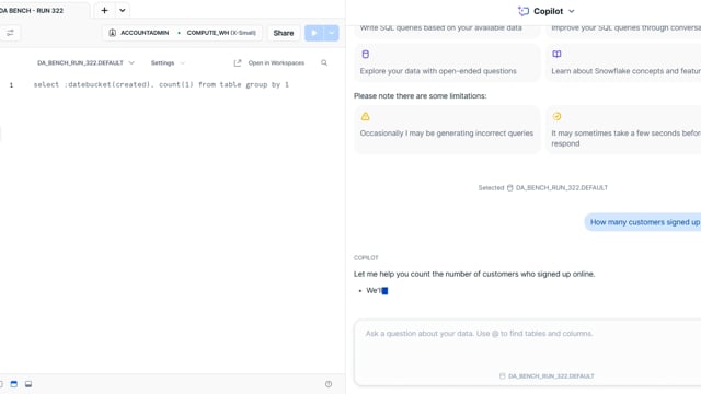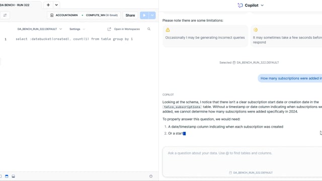 DA-bench Setup for Run #322 — Scalability Score: 71.4% (5 / 7)