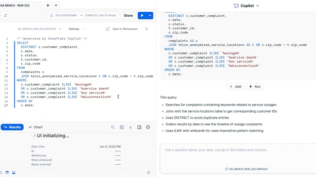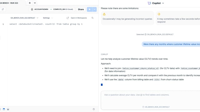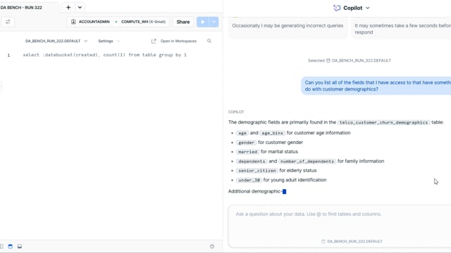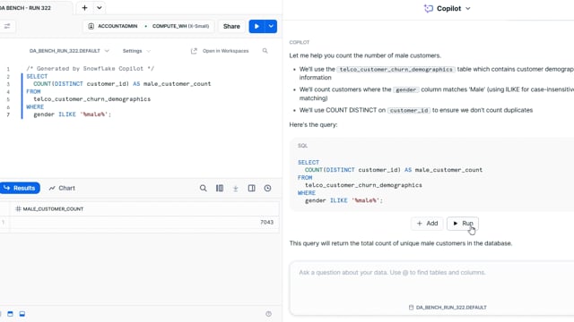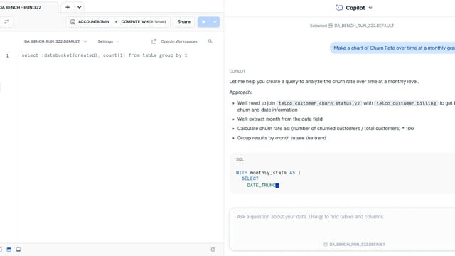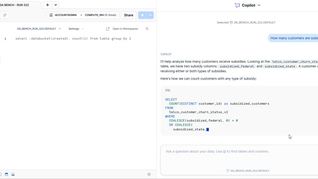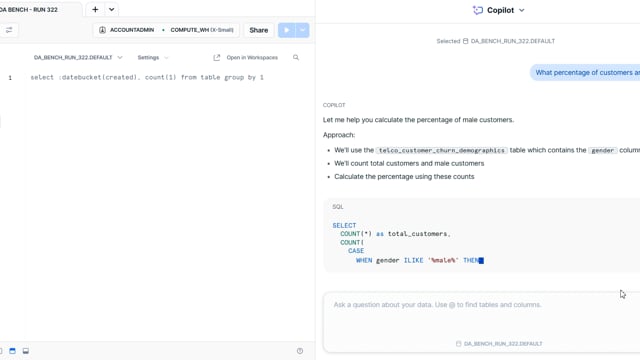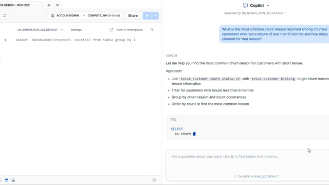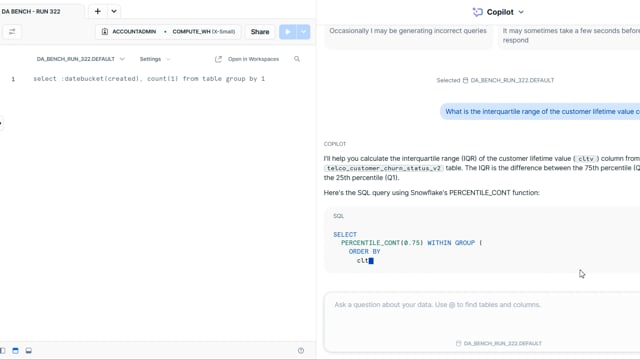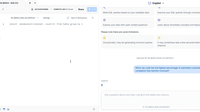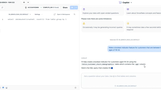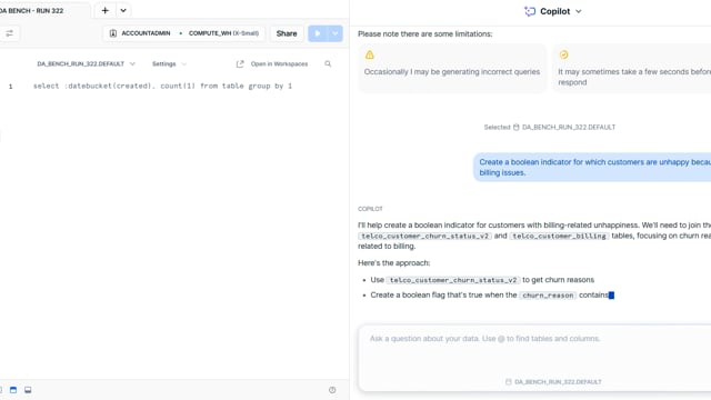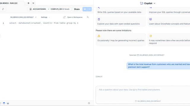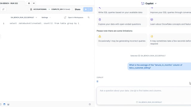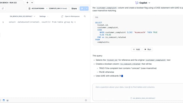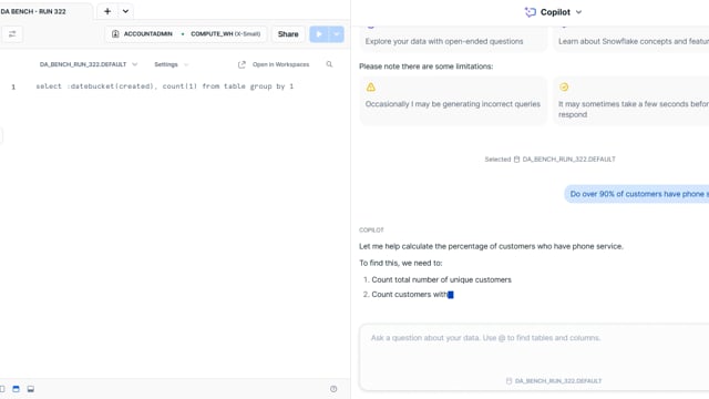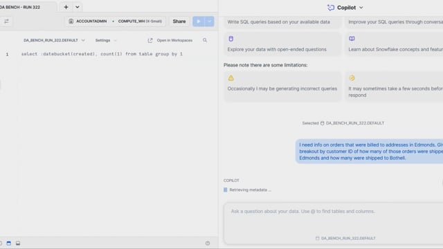 DA-bench Results for Run #322 — Test Score: 46.4% (130 / 280)