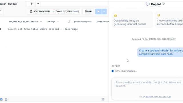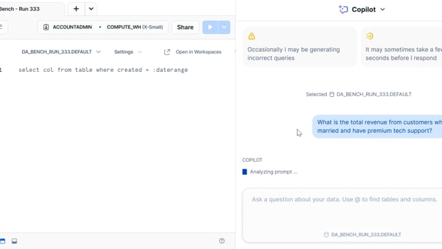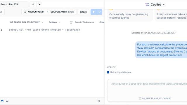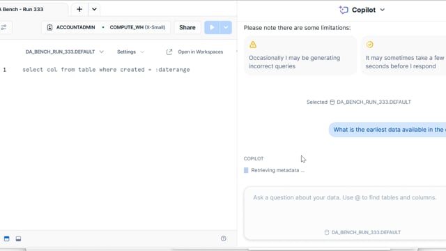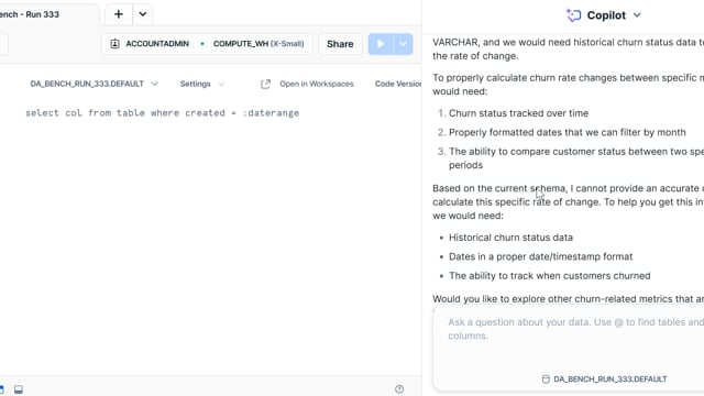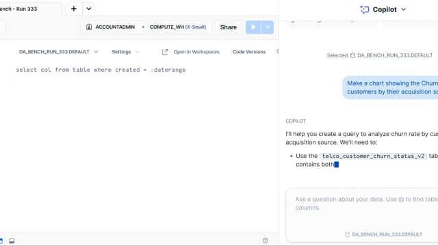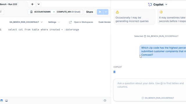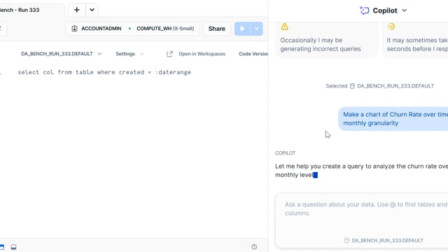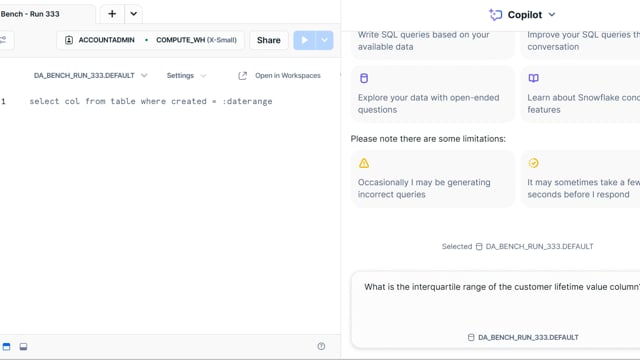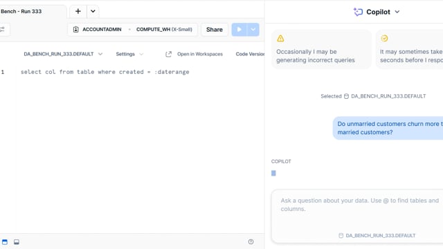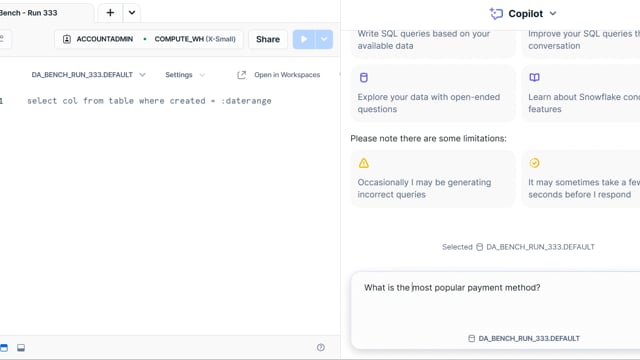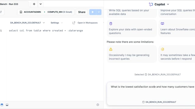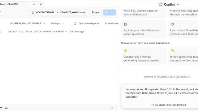 DA-bench Results for Run #333 — Test Score: 50.4% (141 / 280)