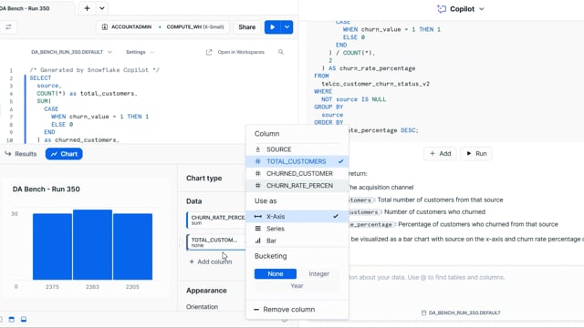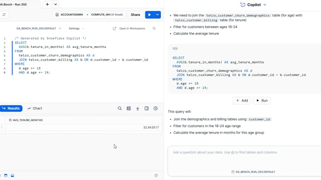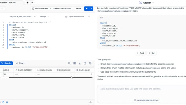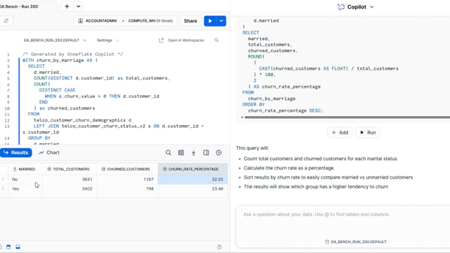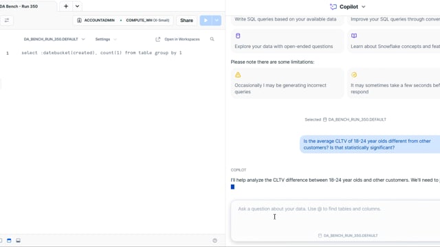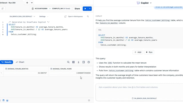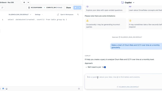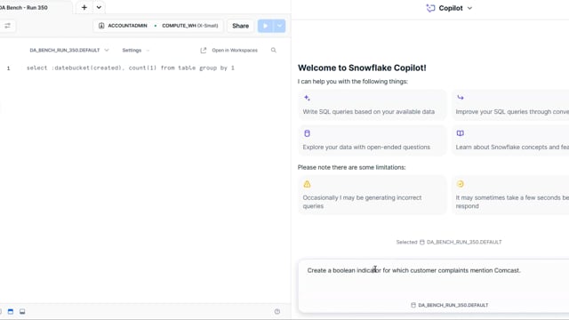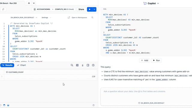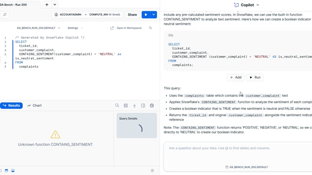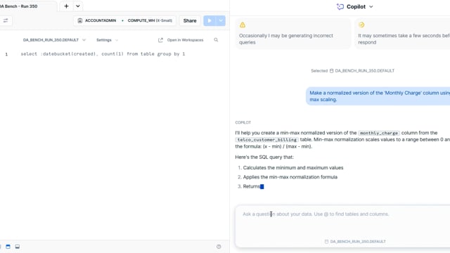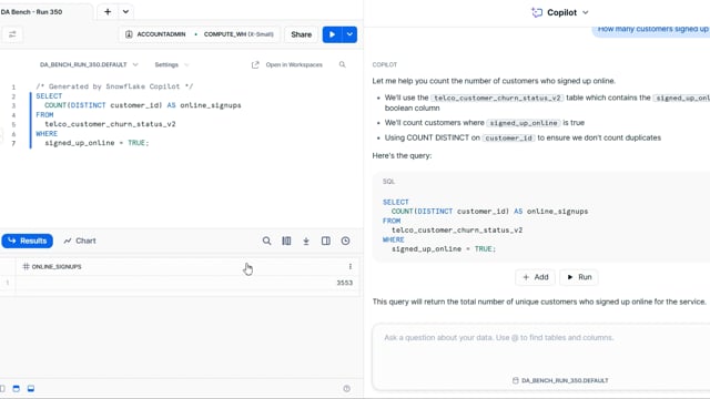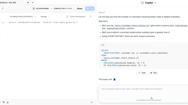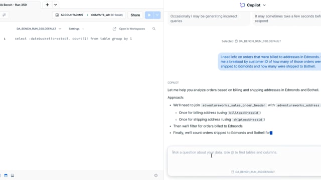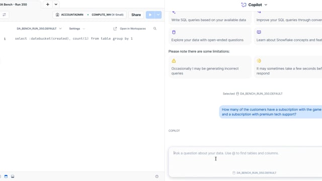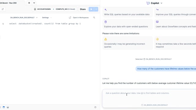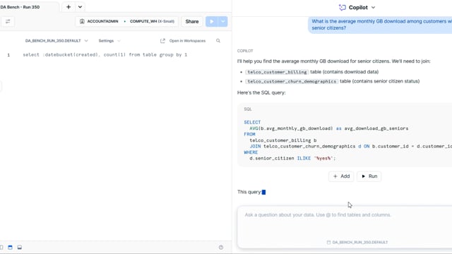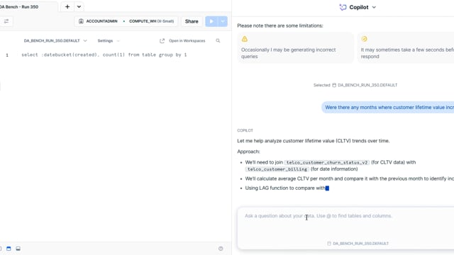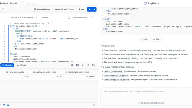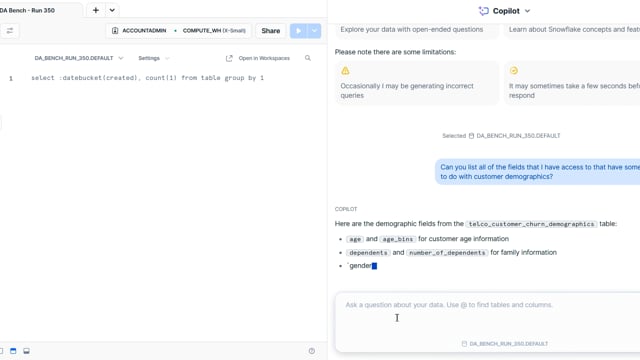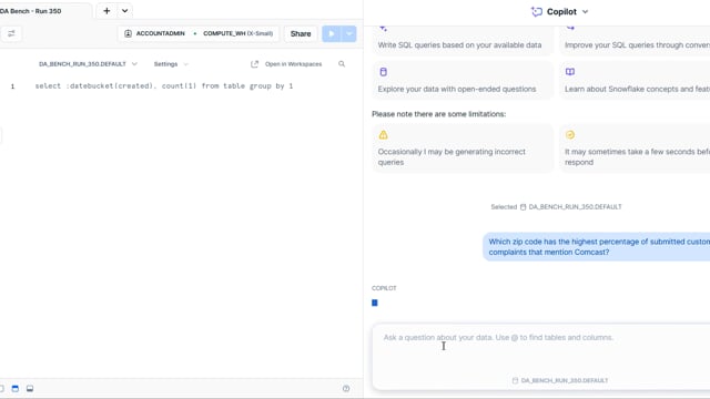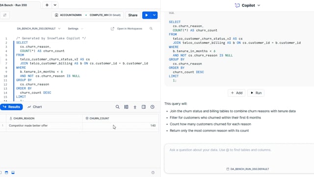 DA-bench Results for Run #350 — Test Score: 51.4% (144 / 280)