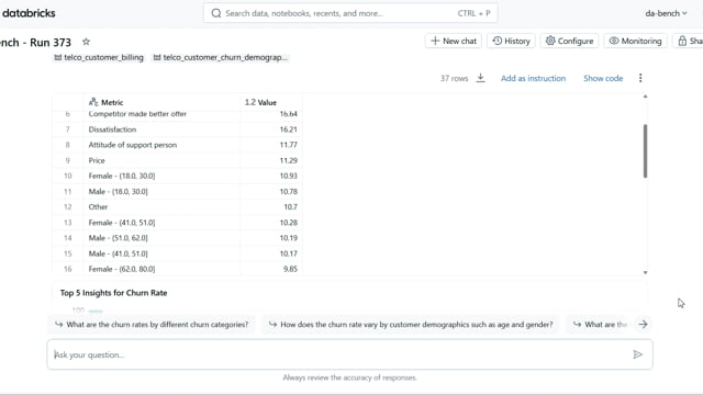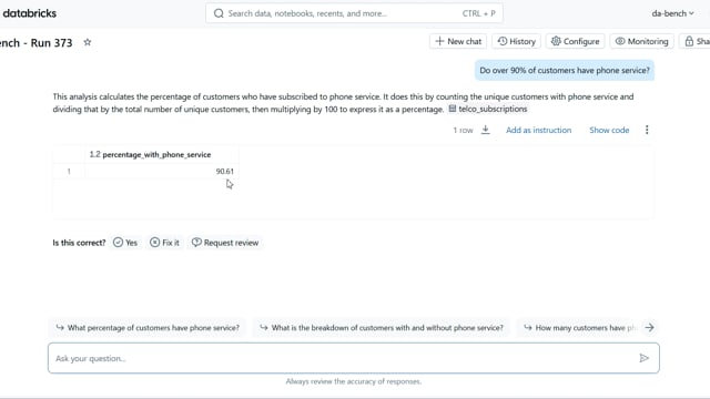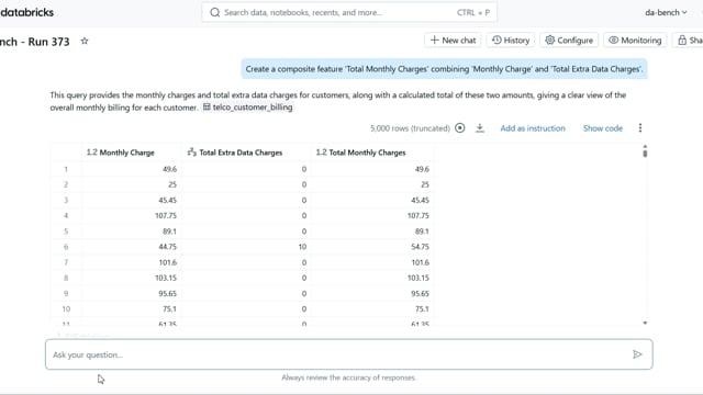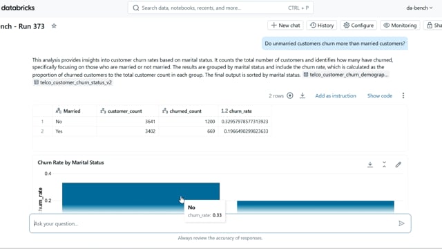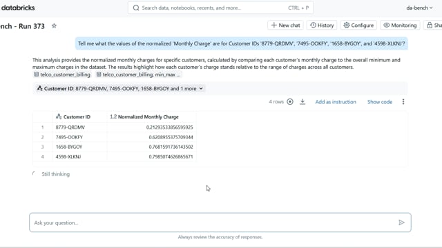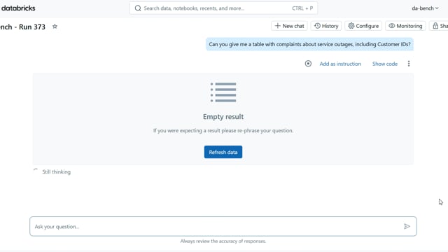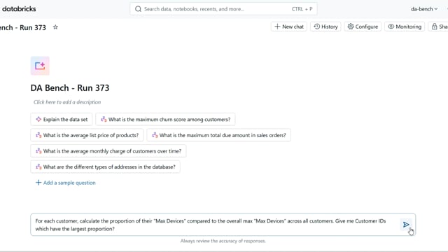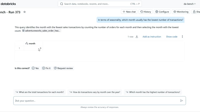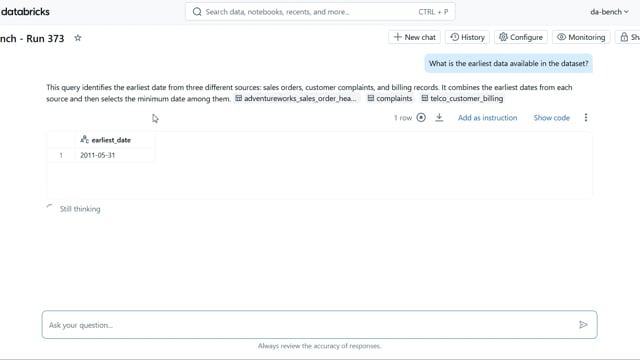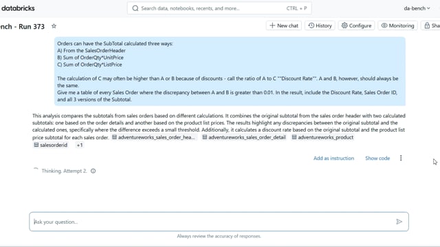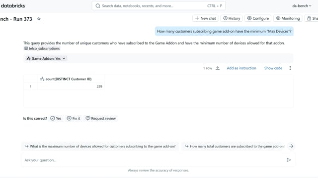 DA-bench Results for Run #373 — Test Score: 46.0% (145 / 315)