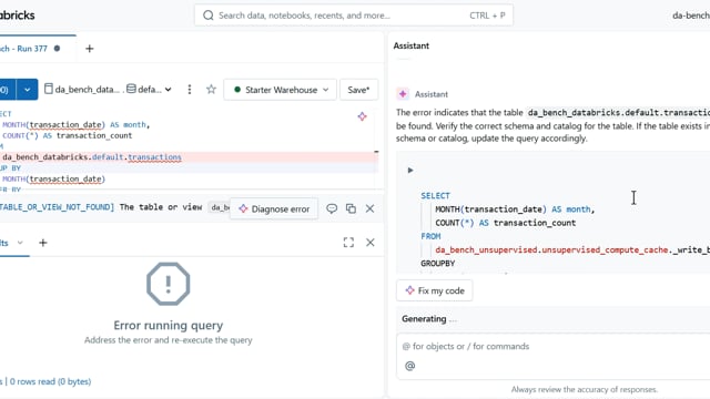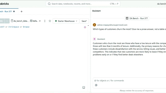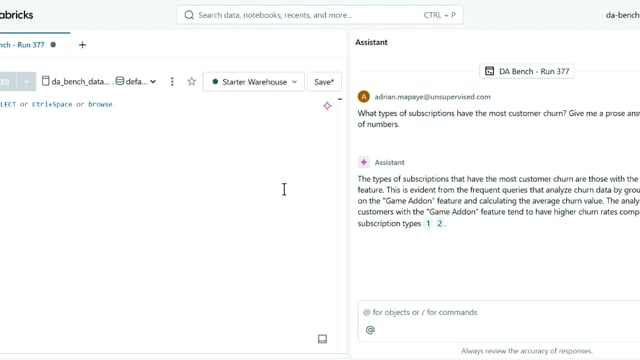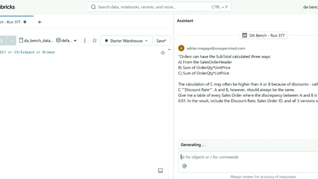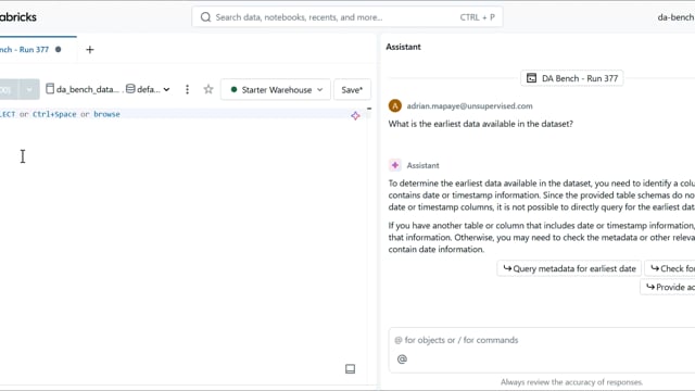 DA-bench Results for Run #377 — Test Score: 34.6% (109 / 315)