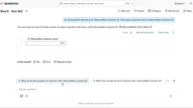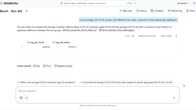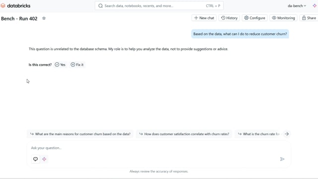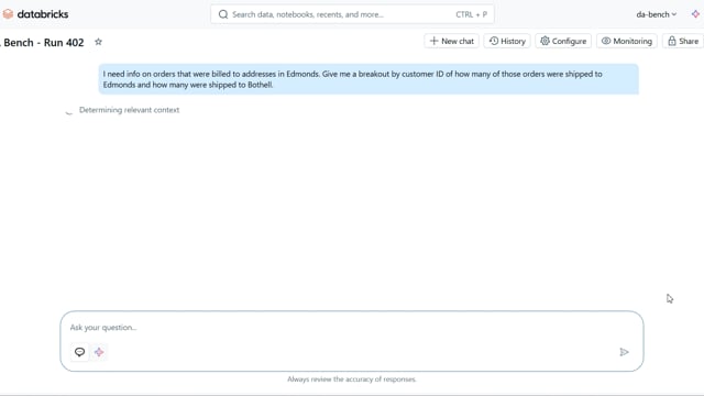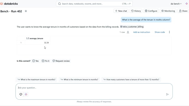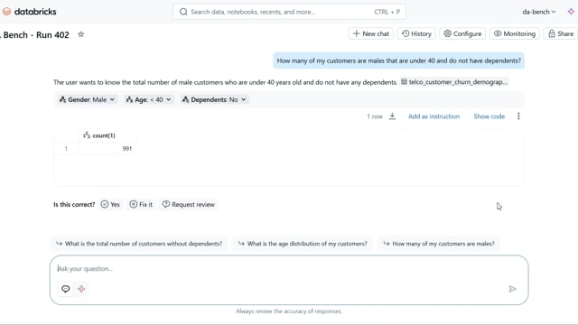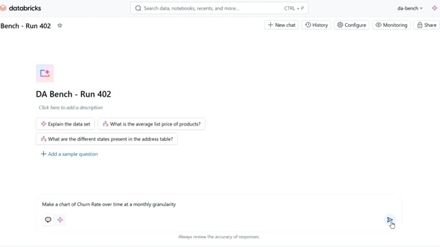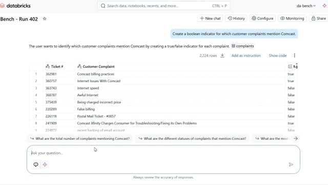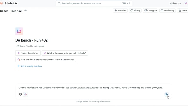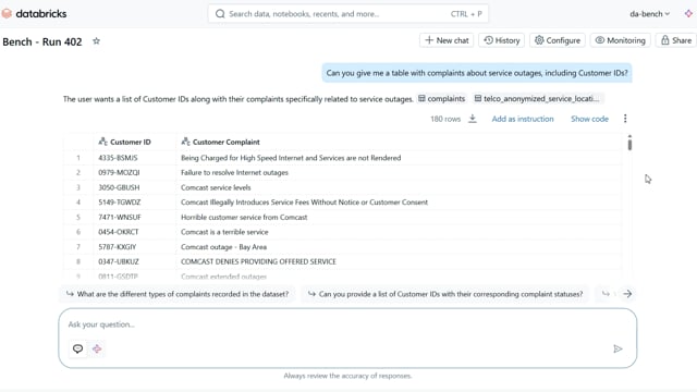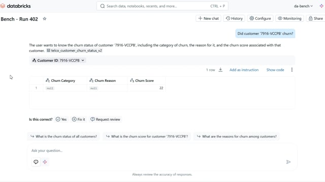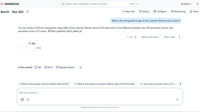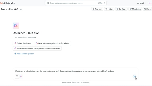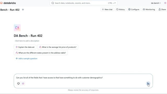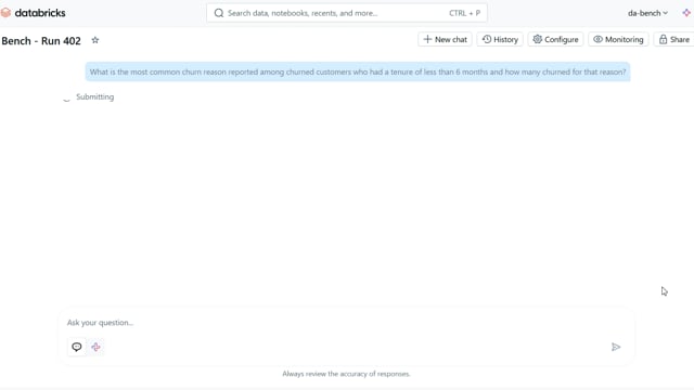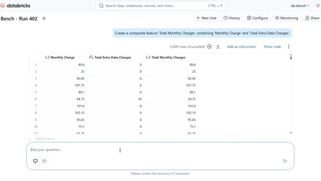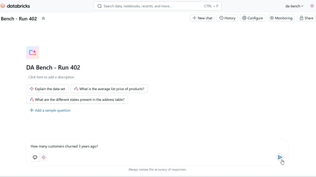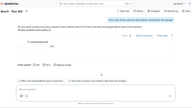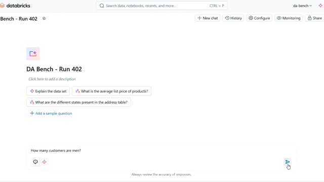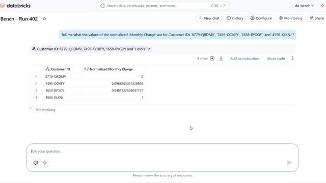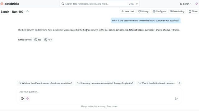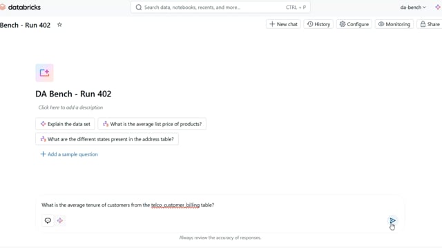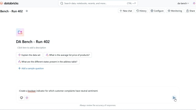 DA-bench Results for Run #402 — Test Score: 50.2% (158 / 315)