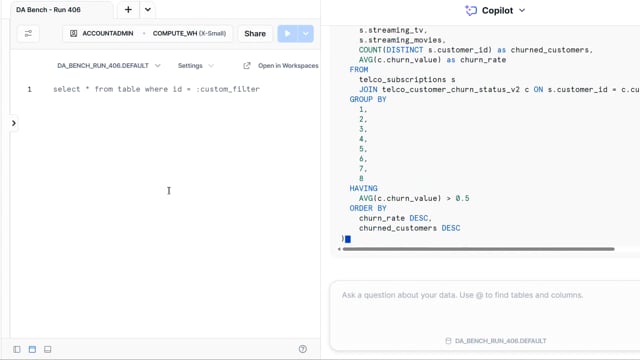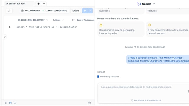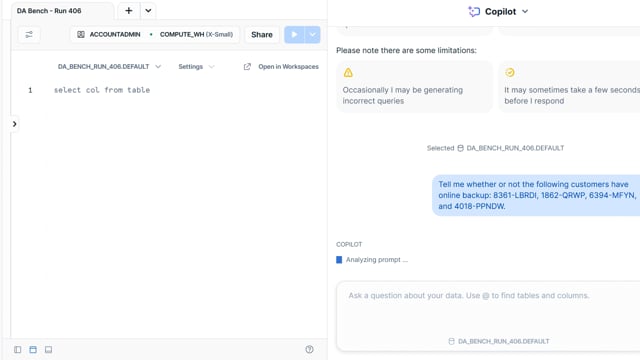 DA-bench Setup for Run #406 — Scalability Score: 71.4% (5 / 7)