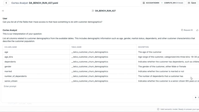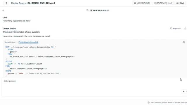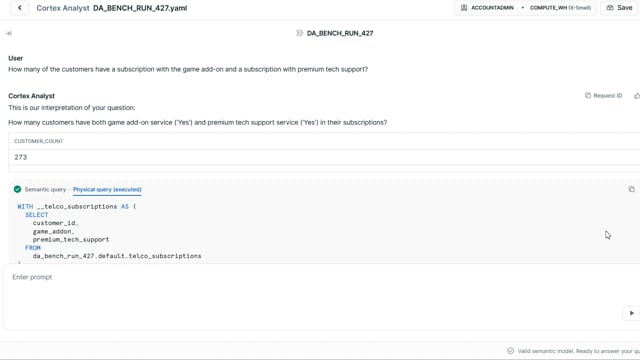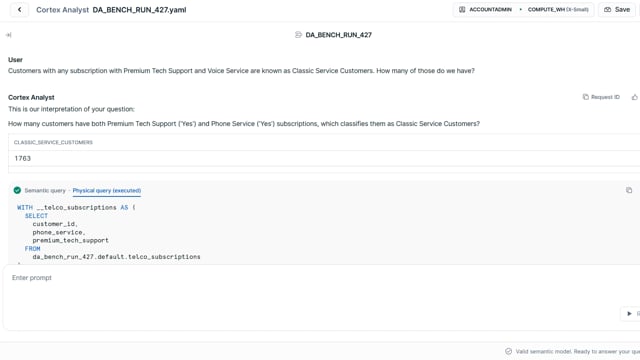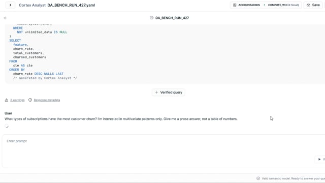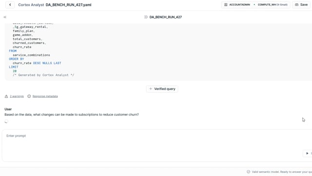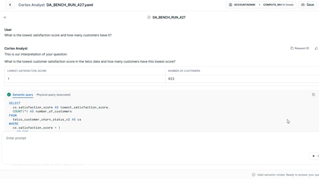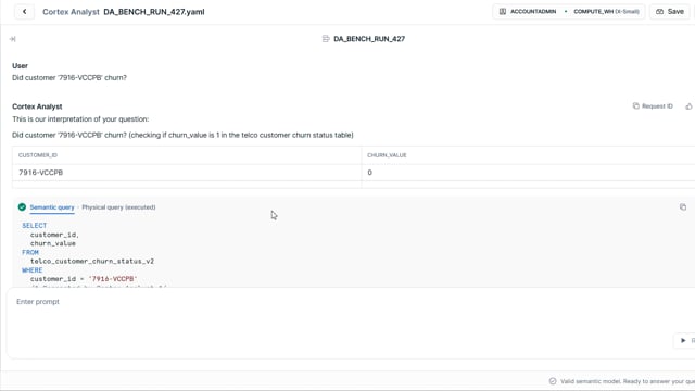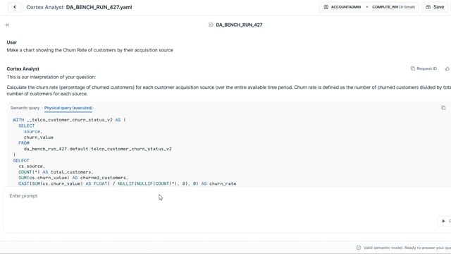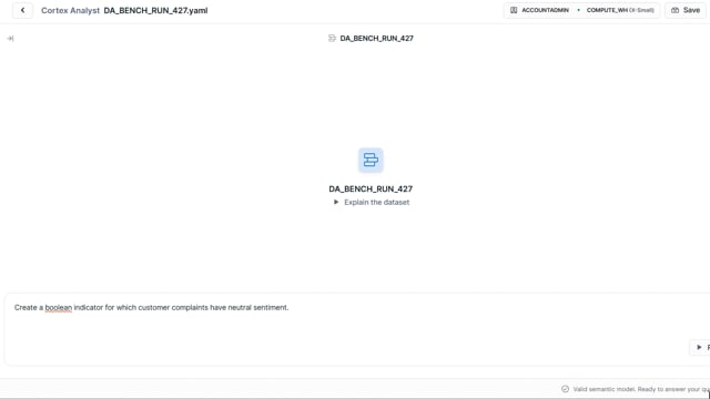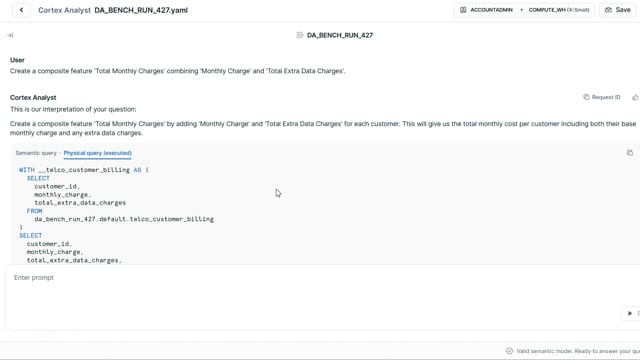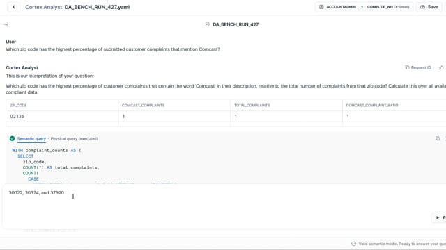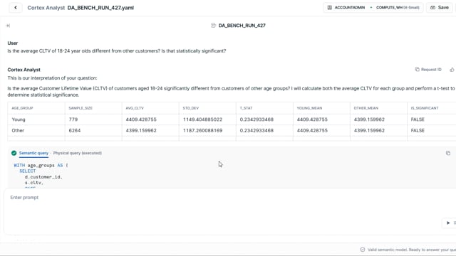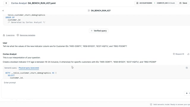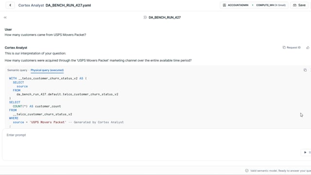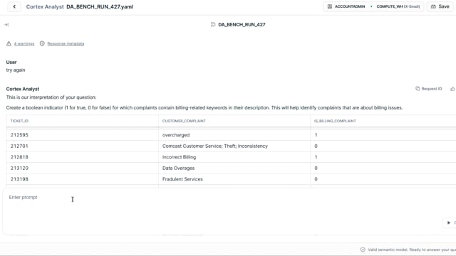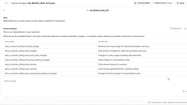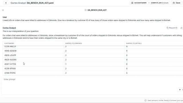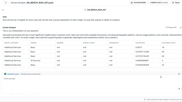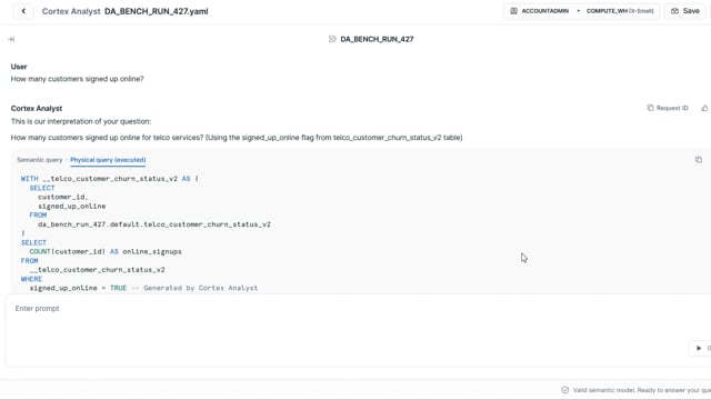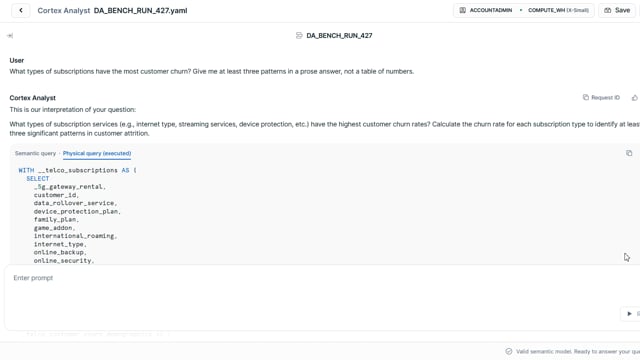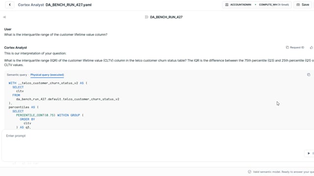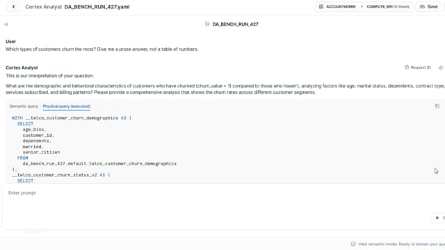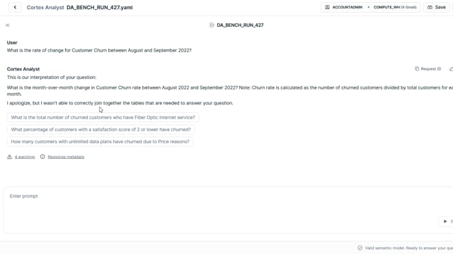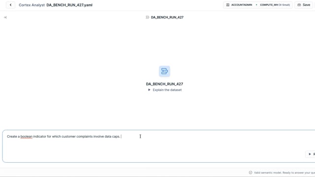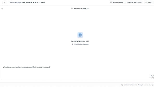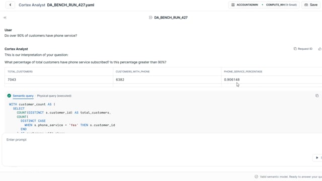 DA-bench Results for Run #427 — Test Score: 65.4% (206 / 315)