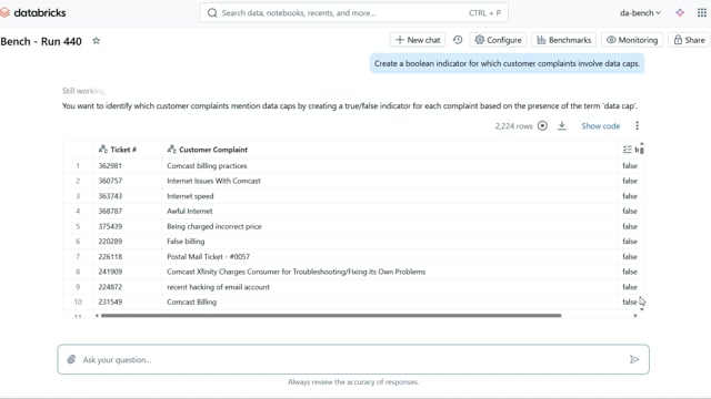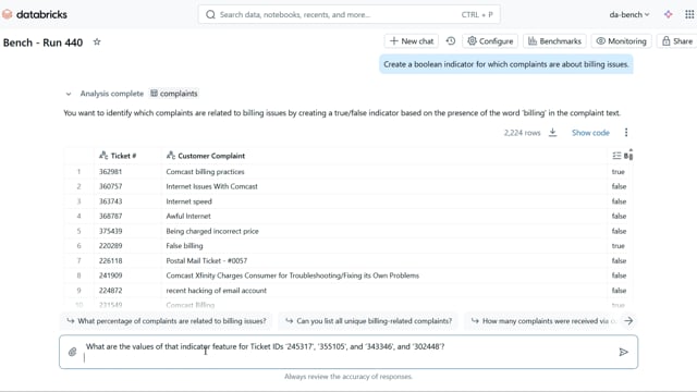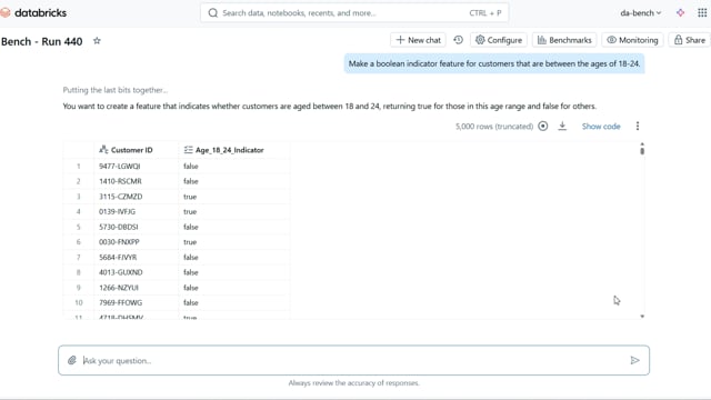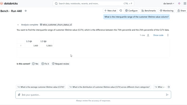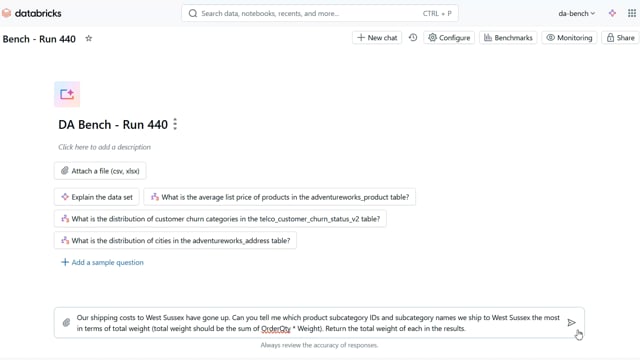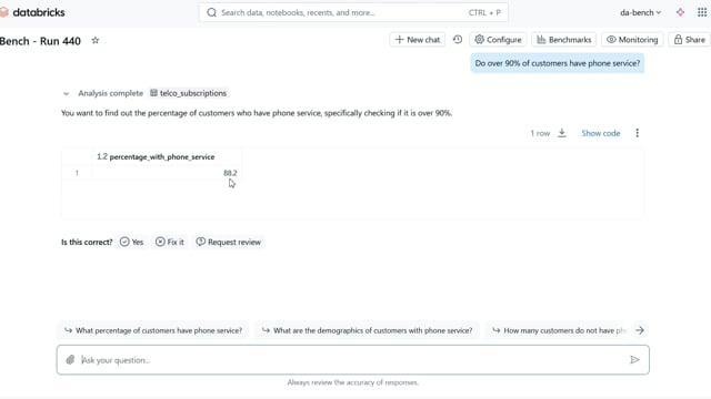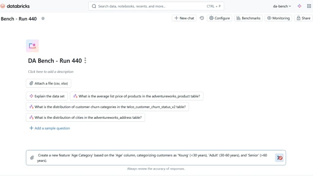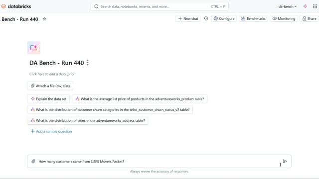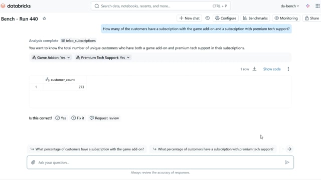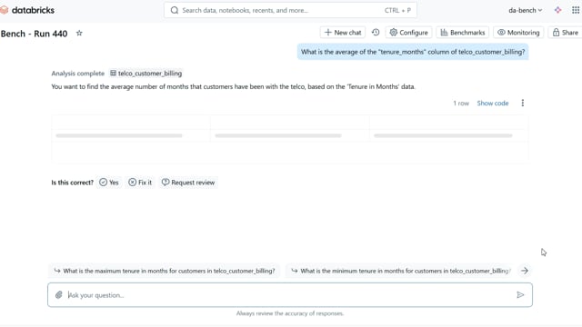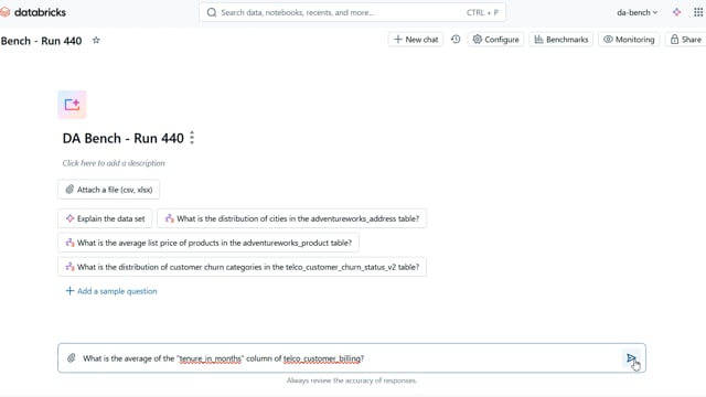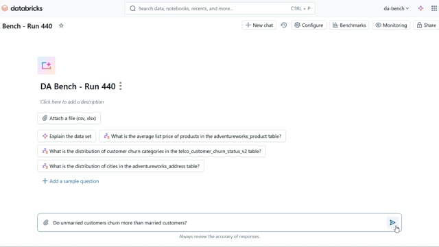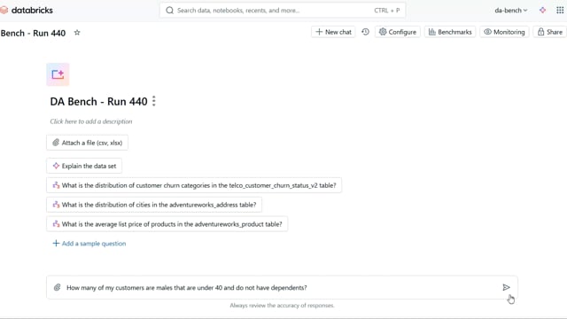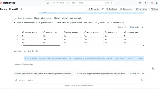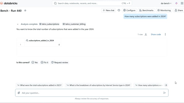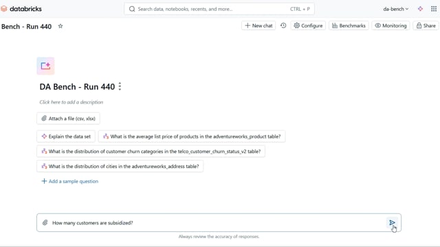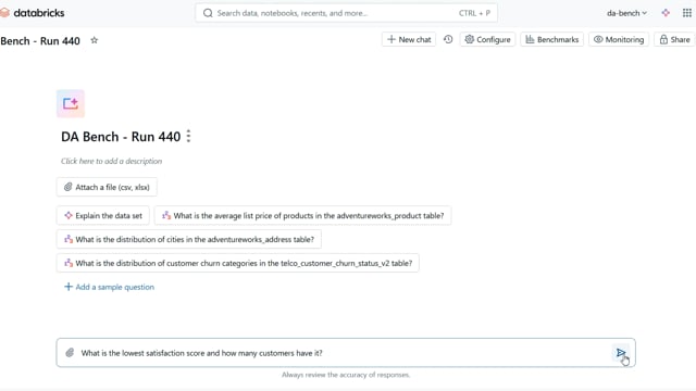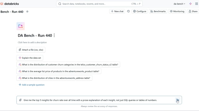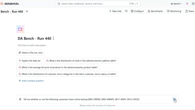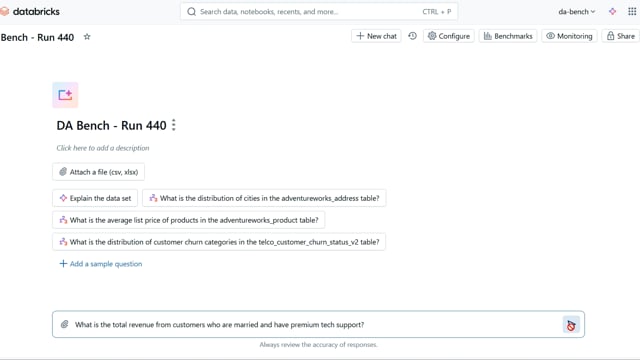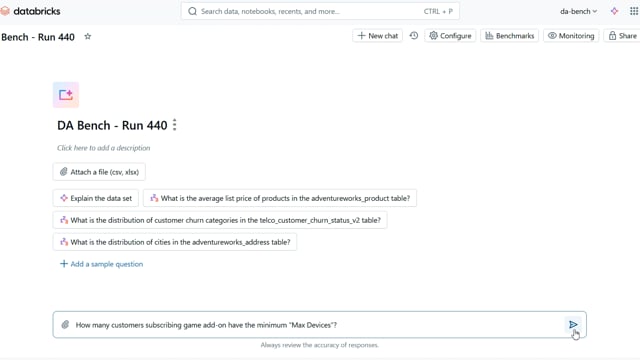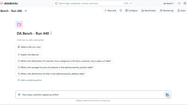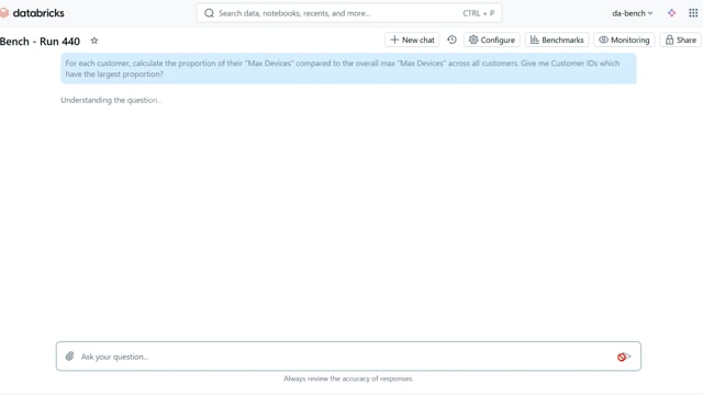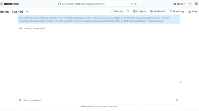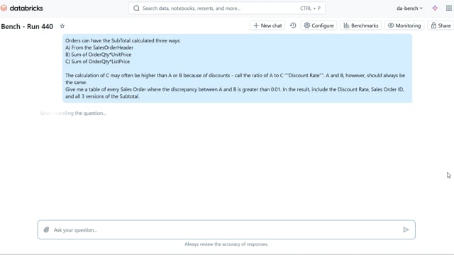 DA-bench Results for Run #440 — Test Score: 21.9% (70 / 320)