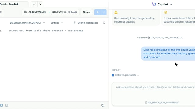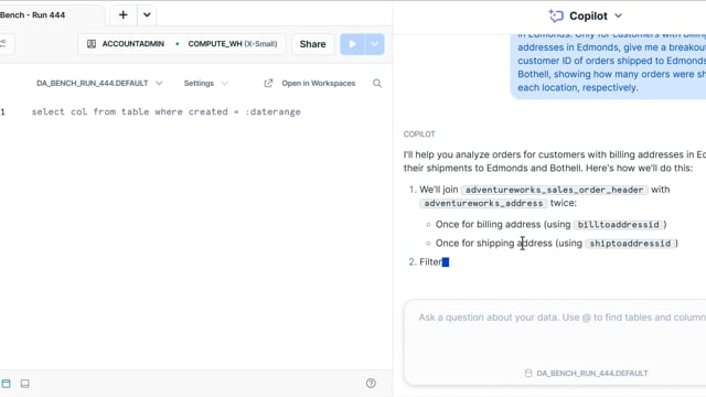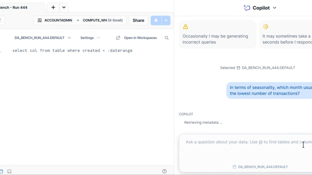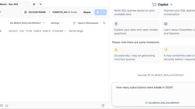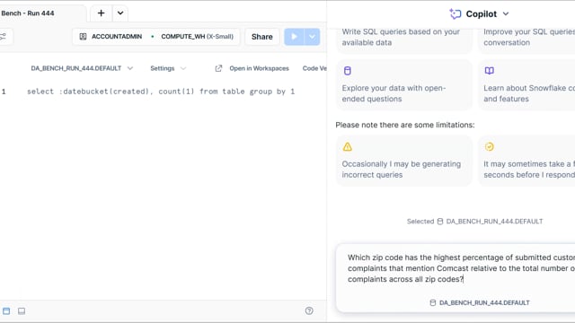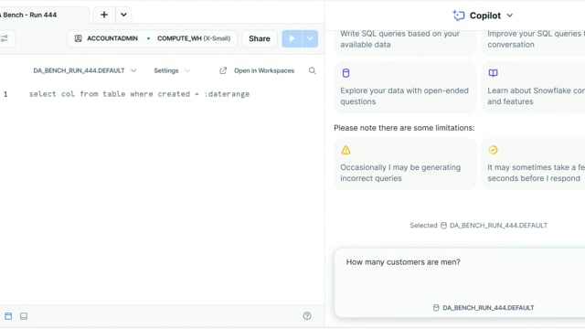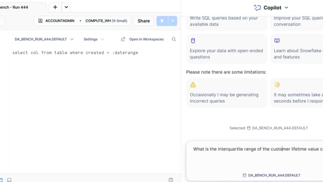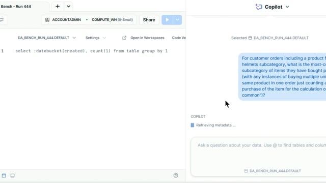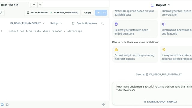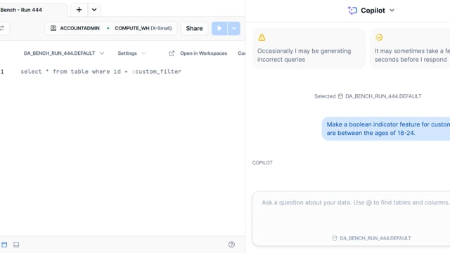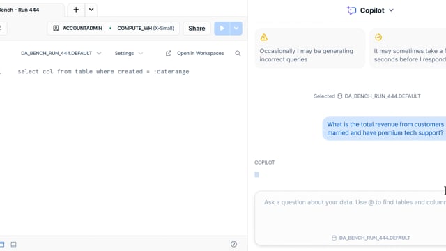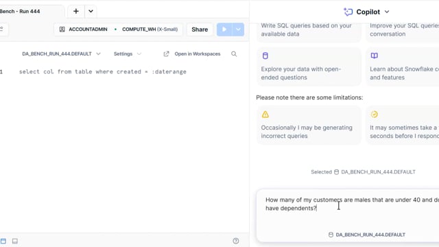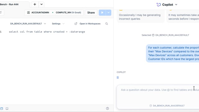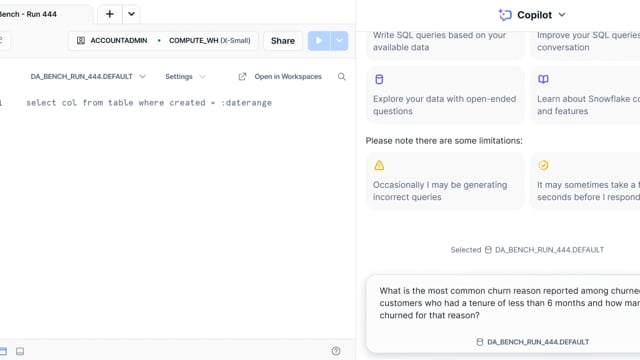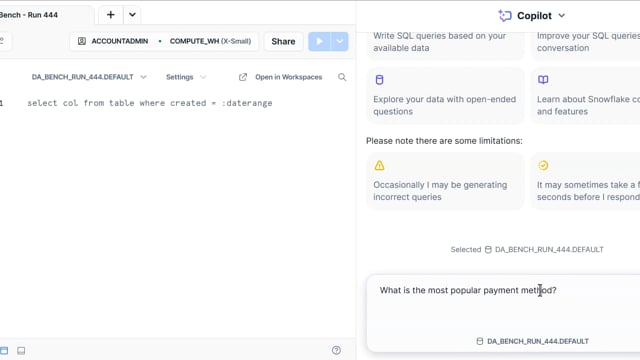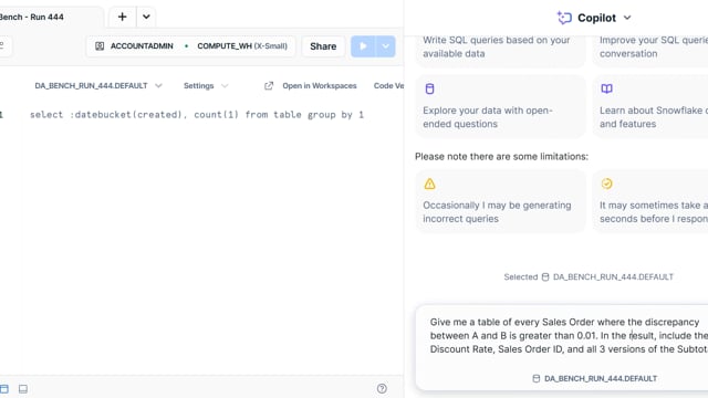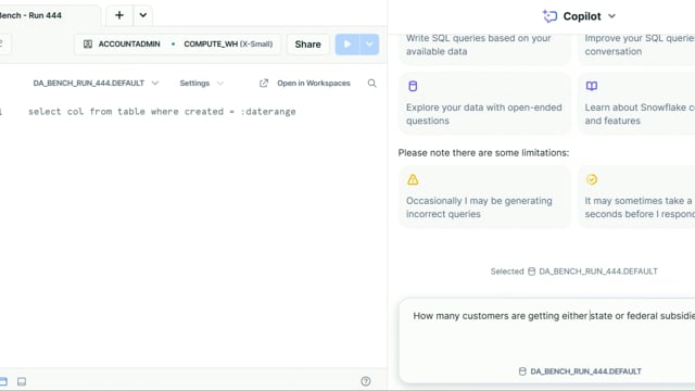 DA-bench Results for Run #444 — Test Score: 23.4% (75 / 320)