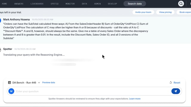 DA-bench Results for Run #446 — Test Score: 32.2% (103 / 320)