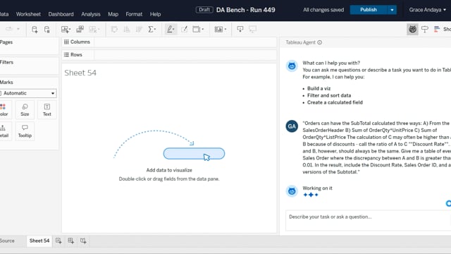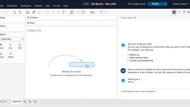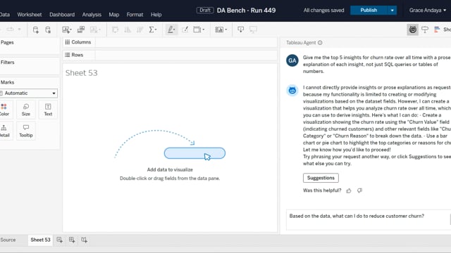 DA-bench Results for Run #449 — Test Score: 8.4% (27 / 320)