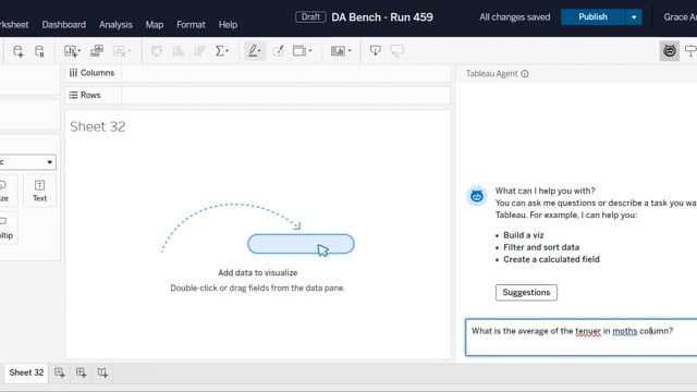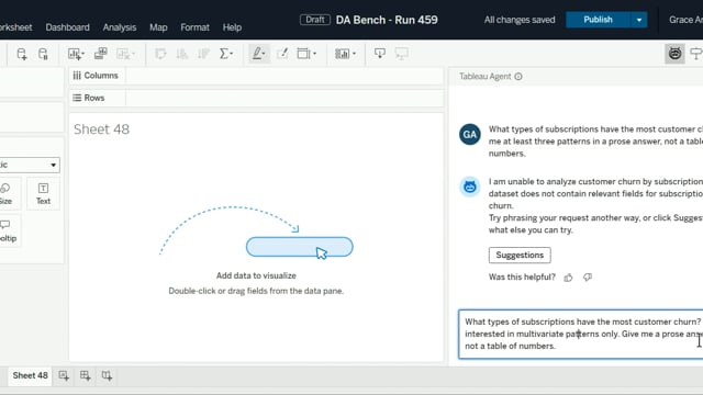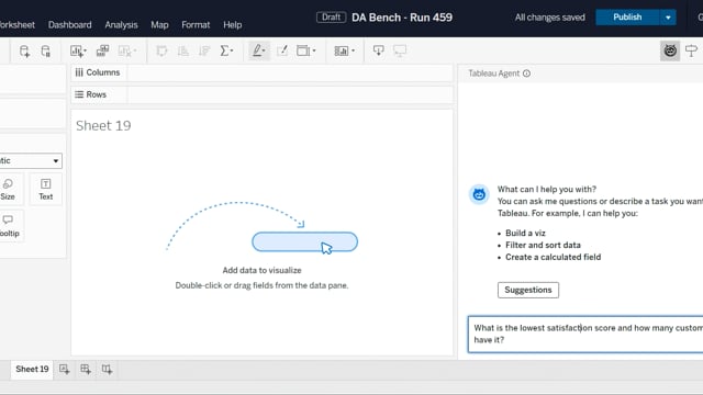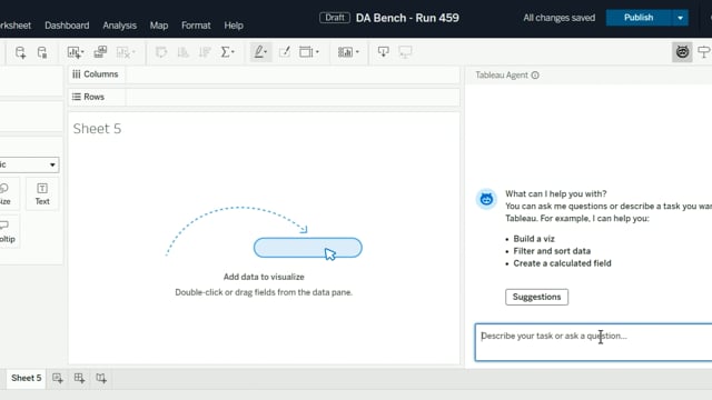 DA-bench Results for Run #459 — Test Score: 5.0% (16 / 320)